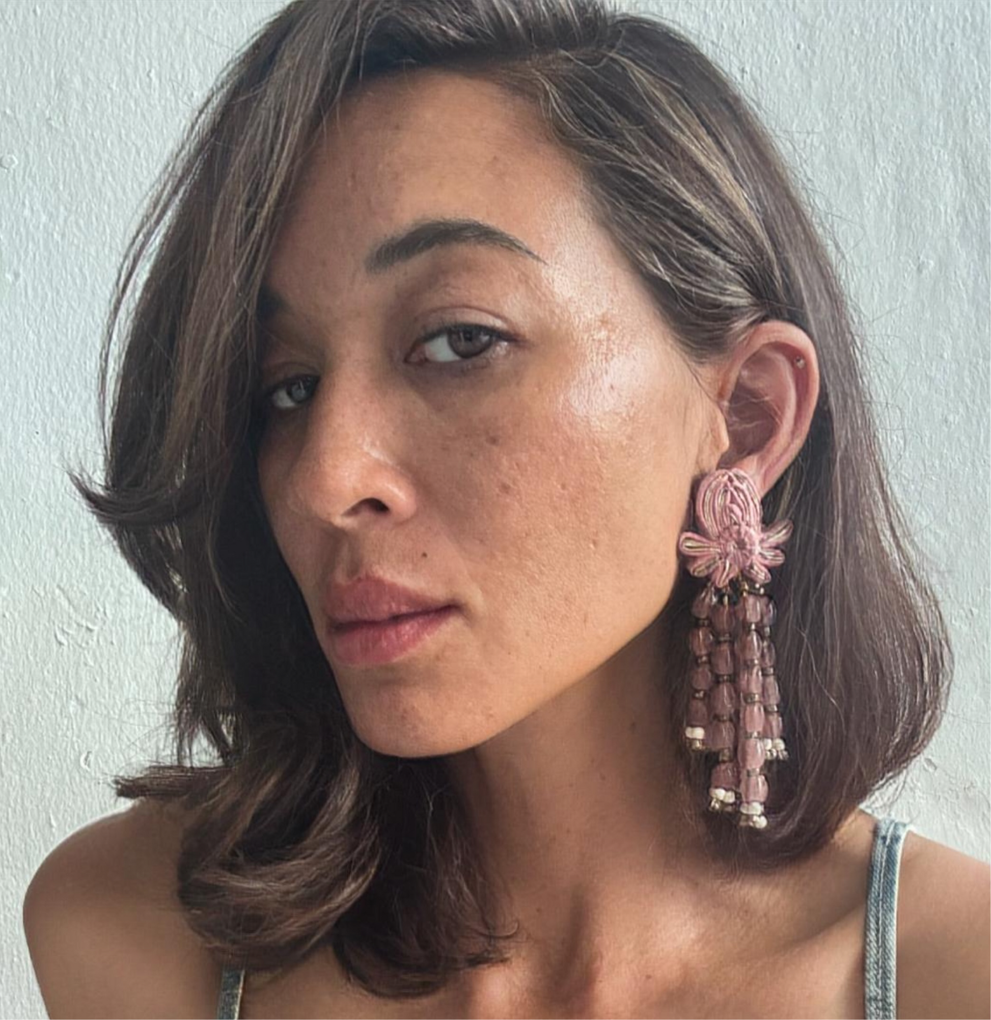 Handmade in-house from ribbon, glass beads, and hours hand stitching
