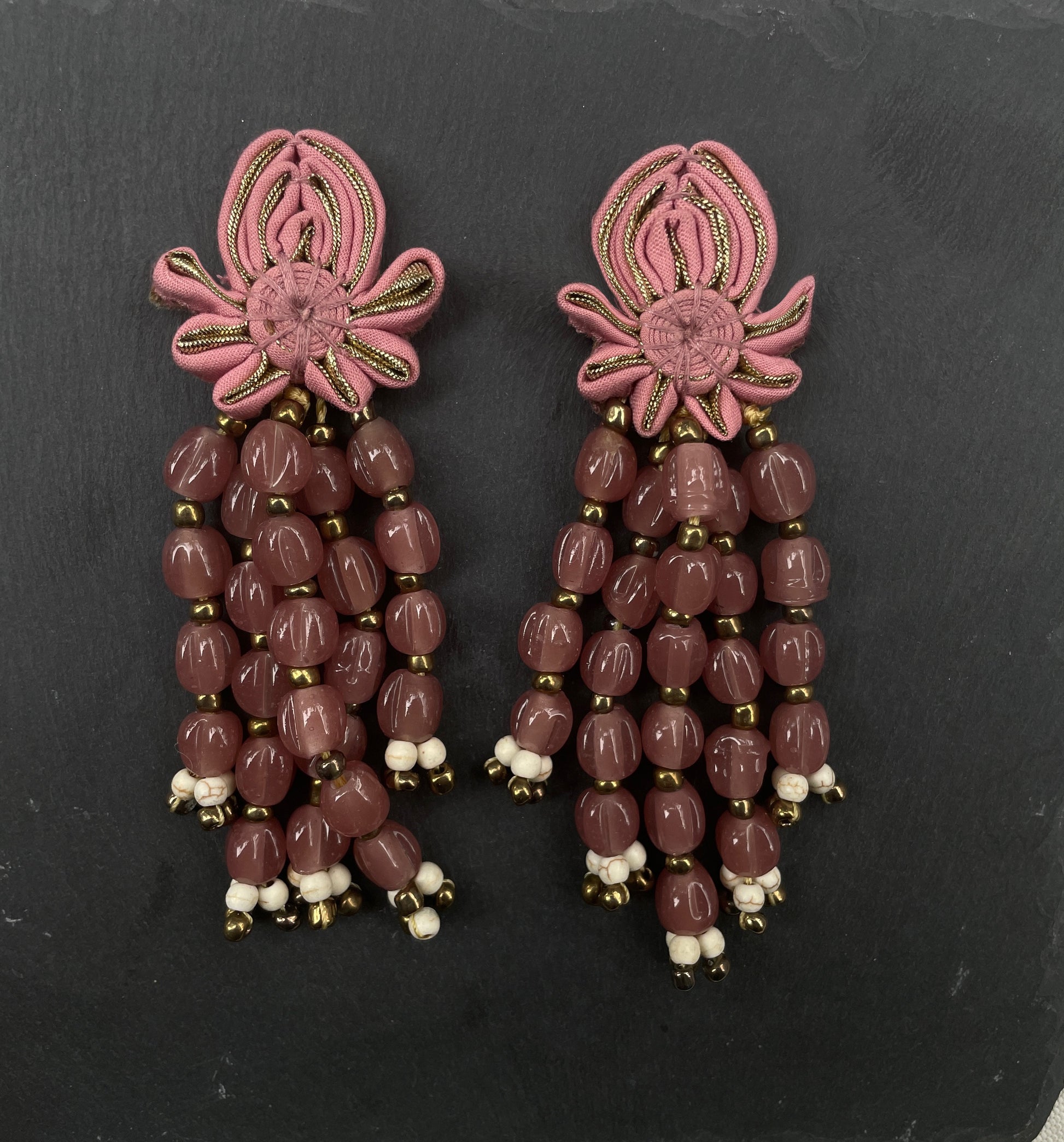 Clip on Cheongsam button and bead earrings.