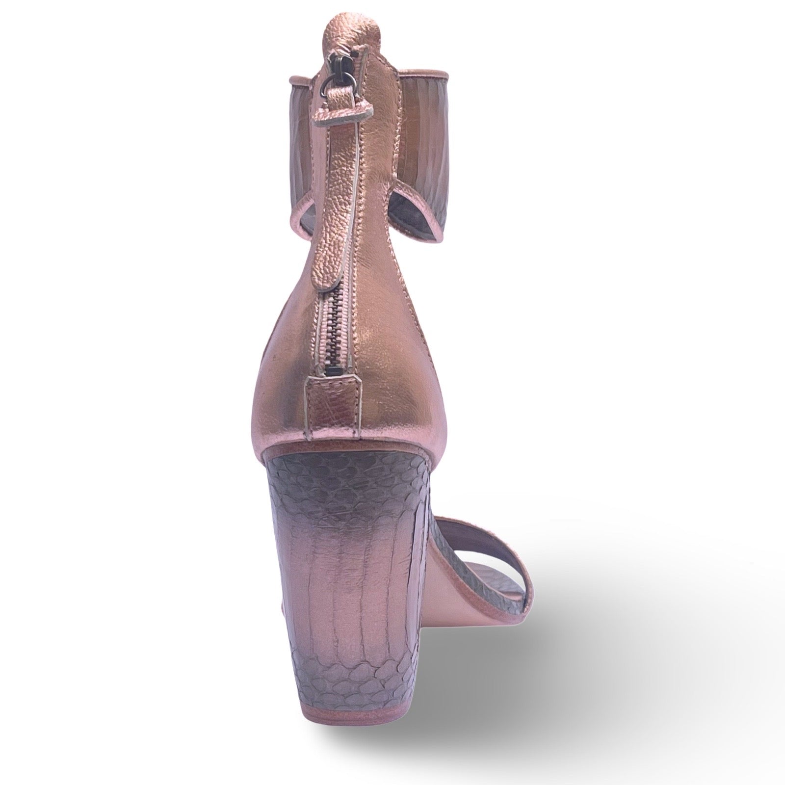 The Farah Block heel is a classic staple wardrobe must have. Flattering ankle cuff is designed to taper the ankle and elongate the leg with the v-shaped ankle strap.