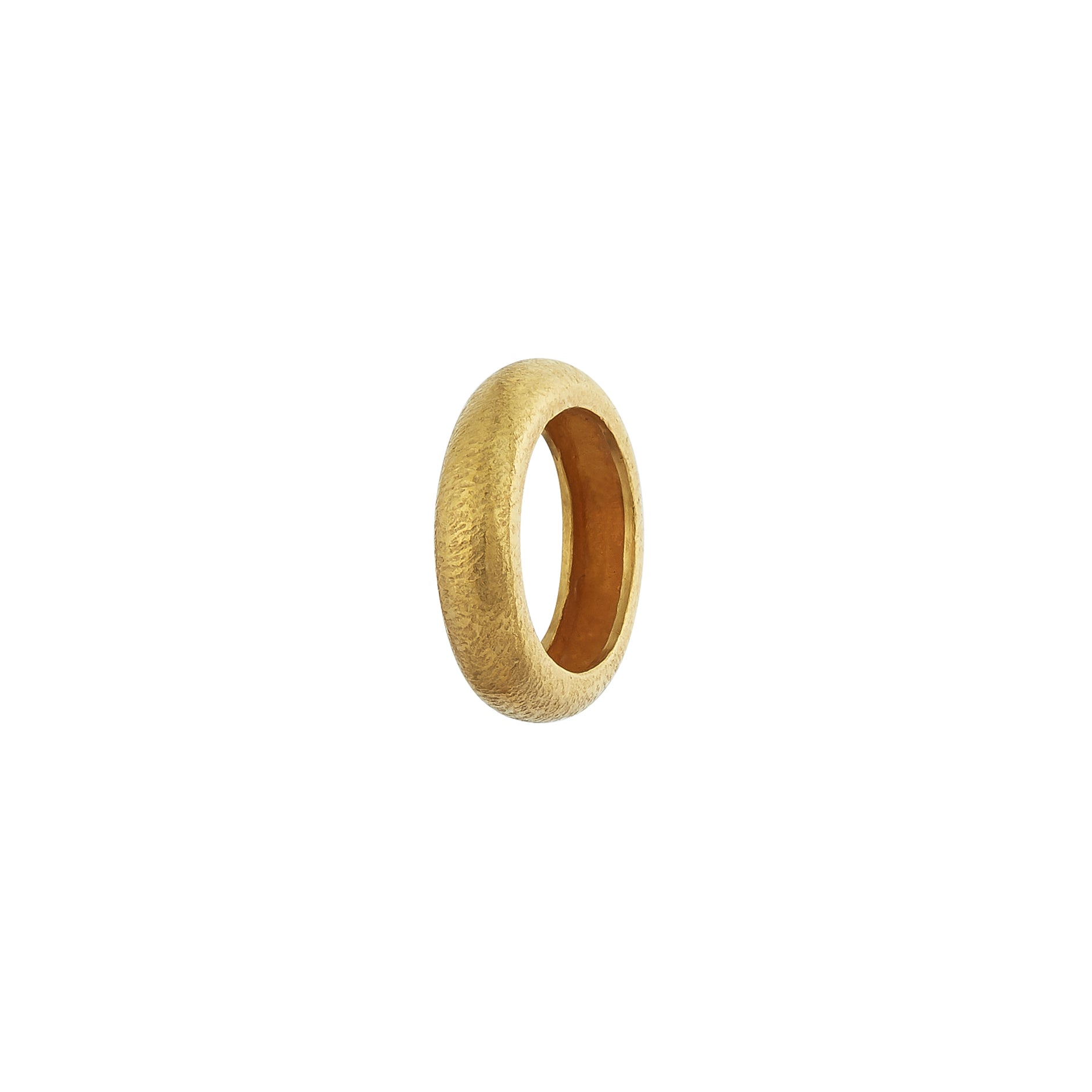The hollow tube ring creates a chunky thick ring look without the weight and discomfort. Hand beaten to perfection and may be stacked along other rings.